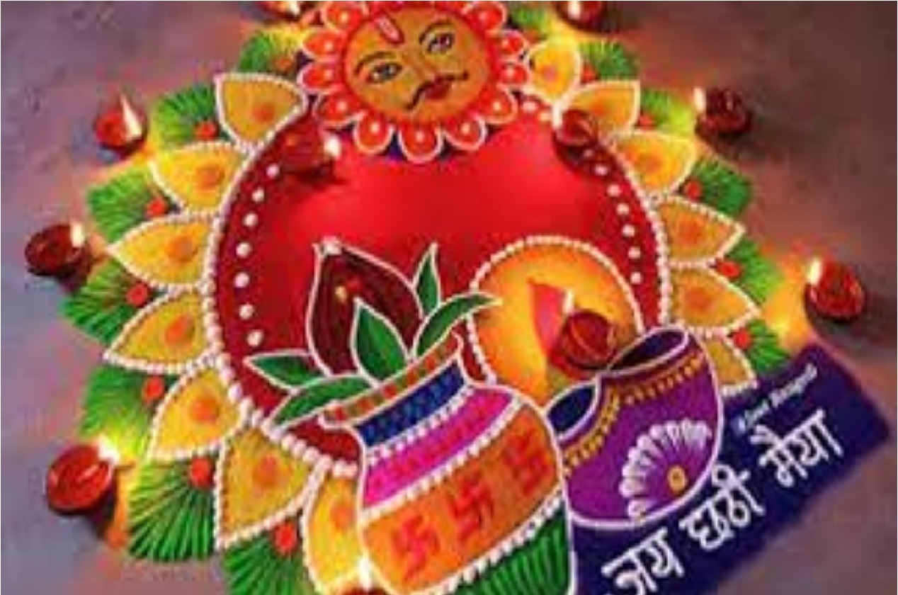 Chhath Puja is primarily a festival dedicated to the worship of the Sun God, who is considered the god of health and radiance. Drawing rangoli at the entrance, courtyard, or place of worship is considered auspicious. It invites positive energy into the home, further enhancing the religious significance of the festival. Rangolis depicting a fasting woman offering arghya, or depicting a Kalash (earthen pot), a supali (butterfly), and the Sun God are considered the most auspicious for this festival.