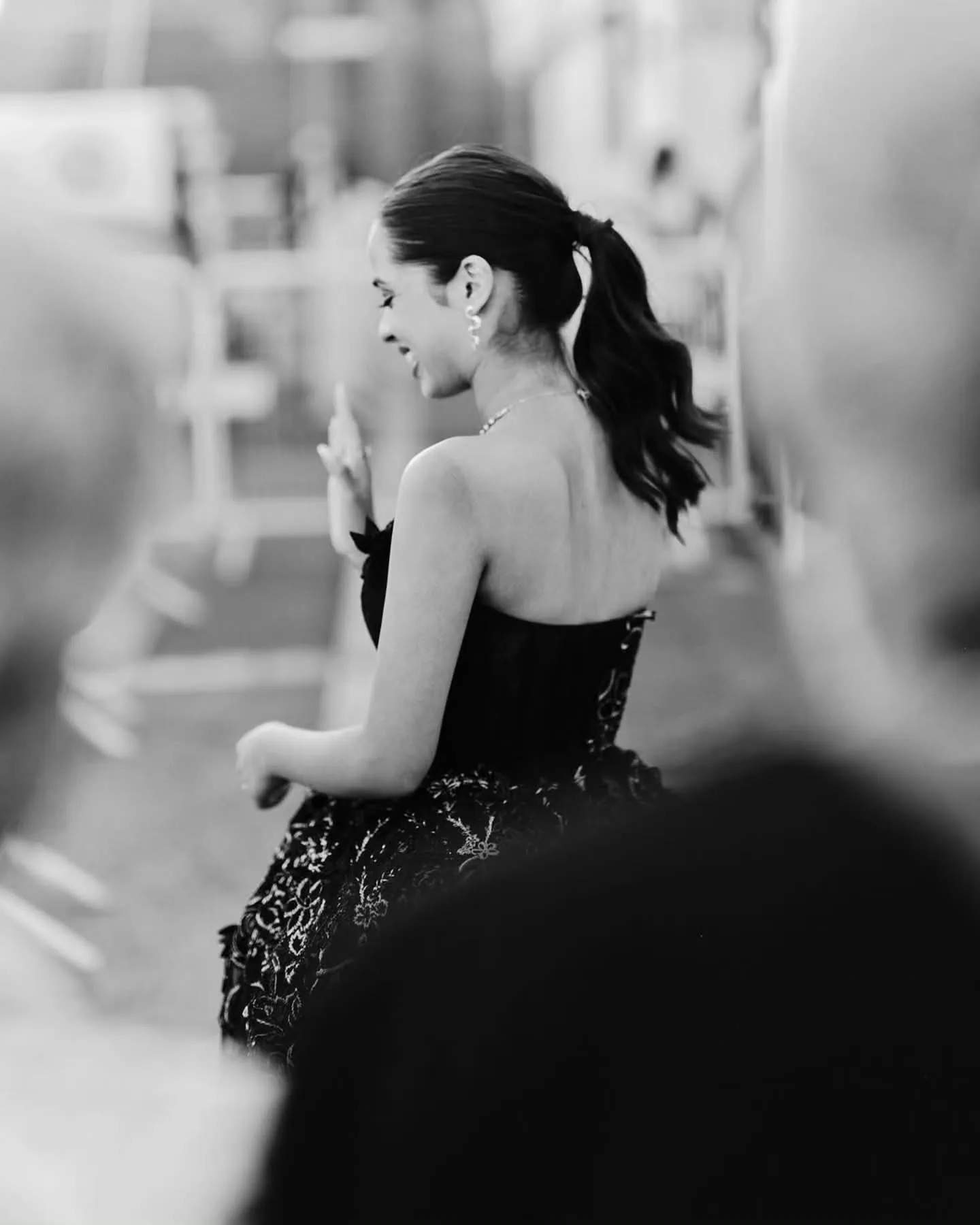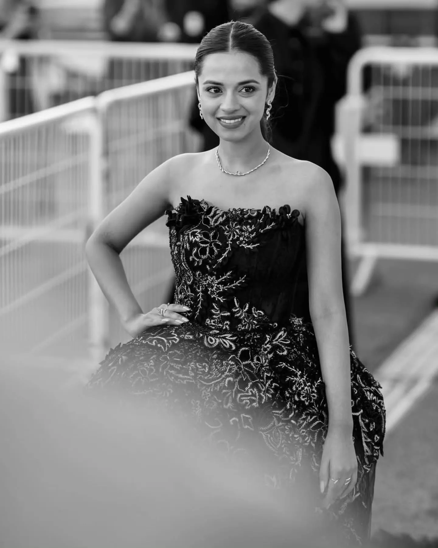 In her Cannes debut, Nitanshi looked beautiful in a black off-shoulder gown by Monica and Karishma.