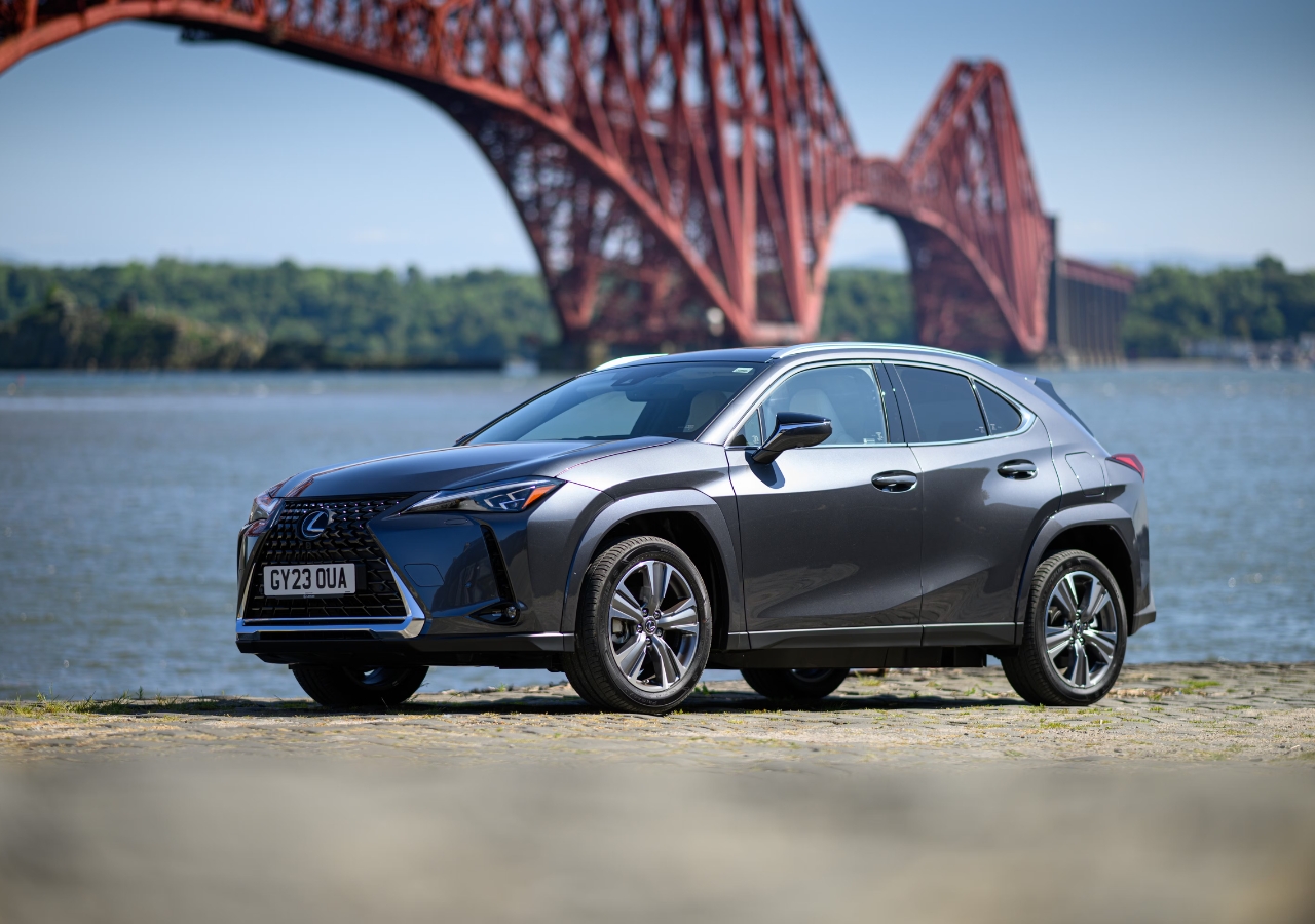 The UX Electric carries Lexus’s signature spindle grille design, LED headlamps and sharp body lines that add a dynamic edge to its appearance. The sleek roofline and bold alloy wheels create a sporty yet elegant look. The rear features wrap-around LED tail lamps and stylish branding that highlight its modern character.