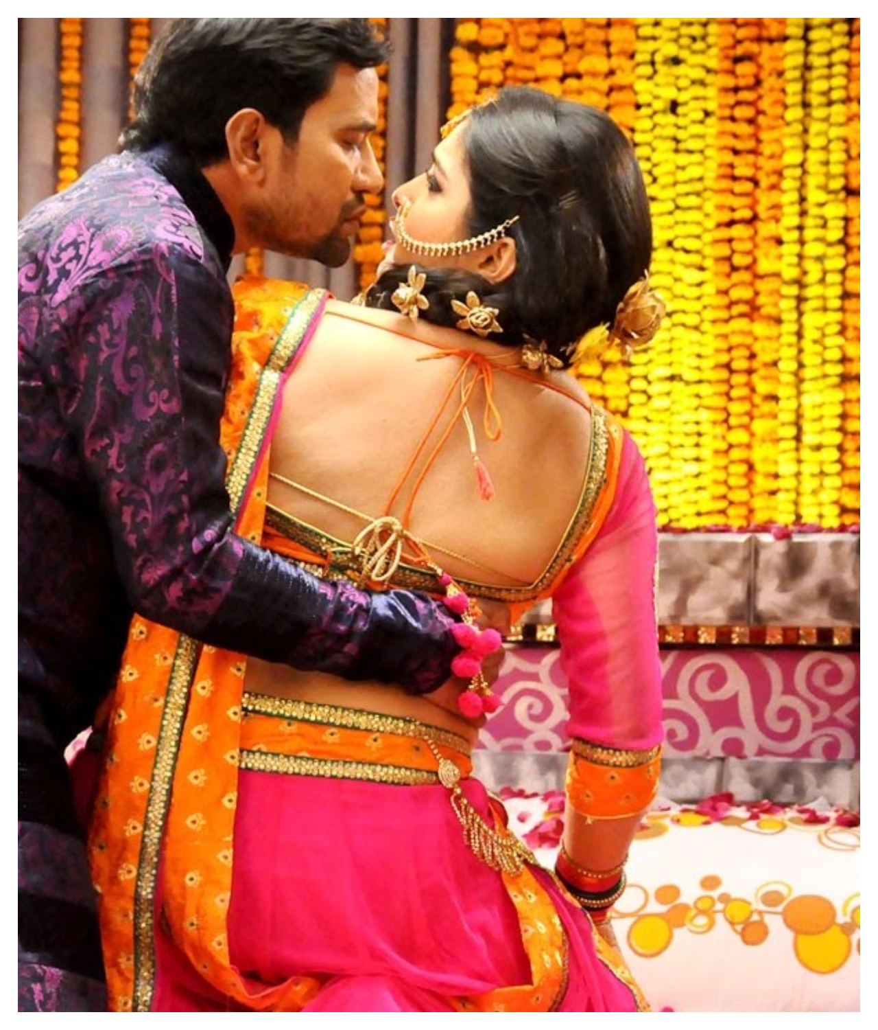 In this photo, Nirahua and Amrapali are seen lost in each other.
