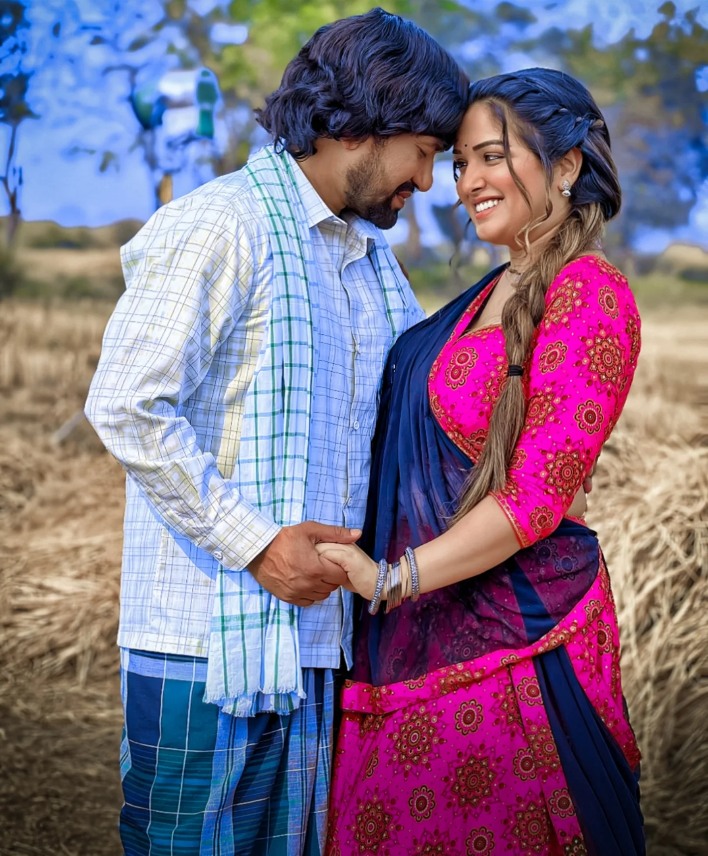 In the picture, Nirahua and Amrapali are lost in each other's love.