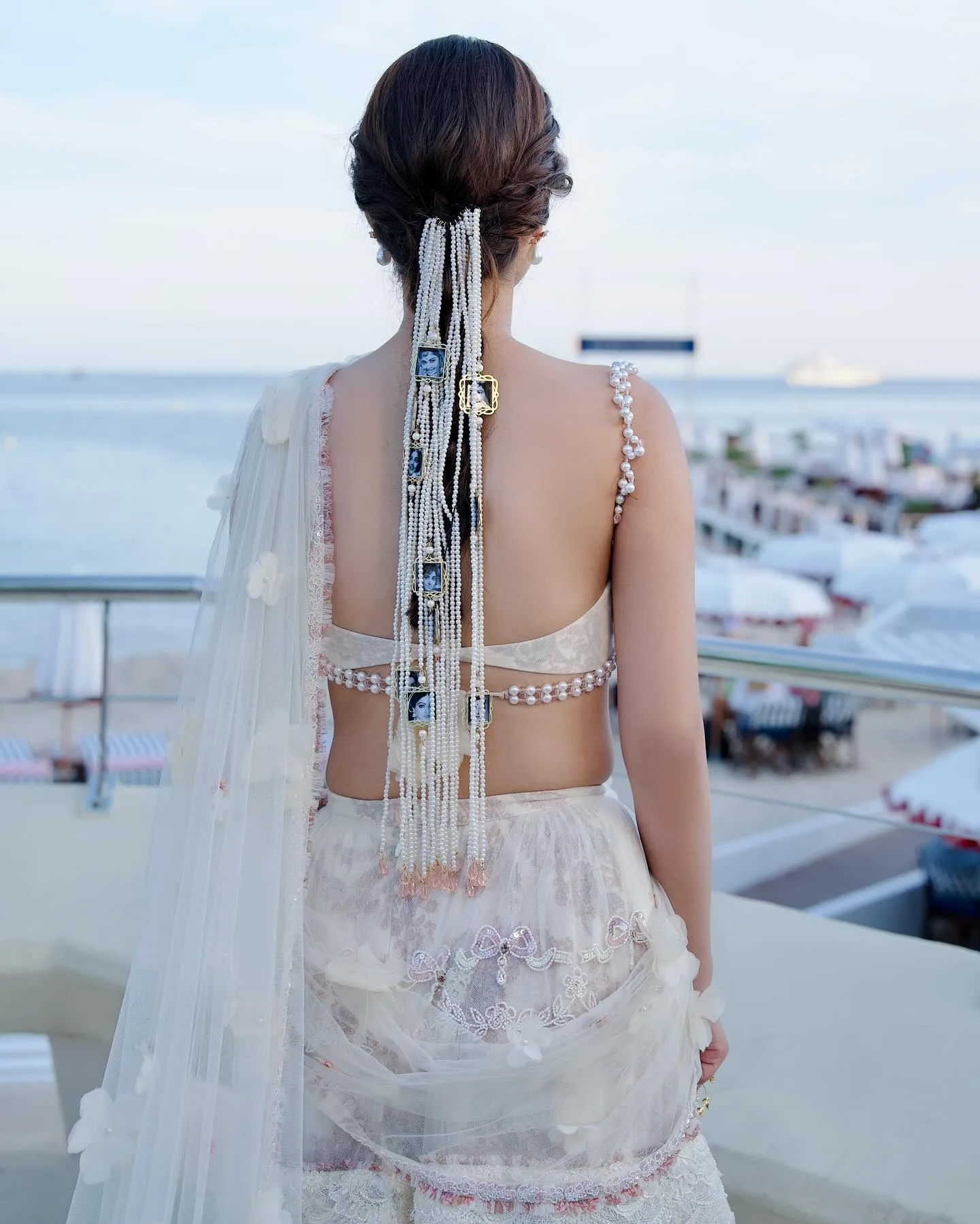 The Parandi in the actress's braid is her highlight. It has many strings of pearls.
