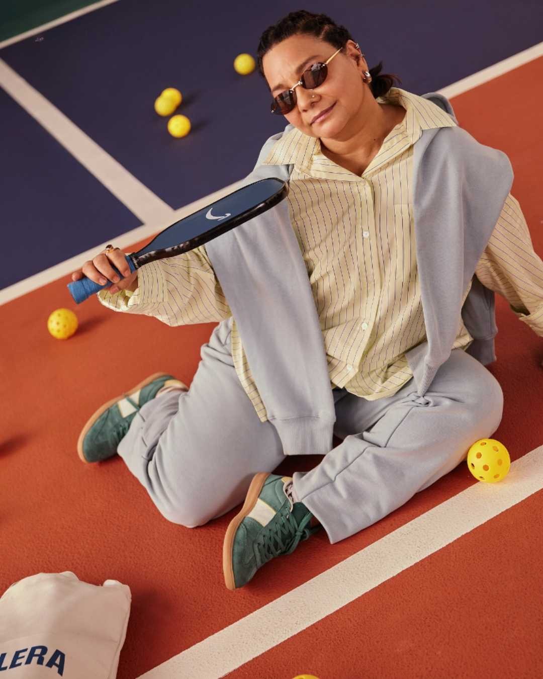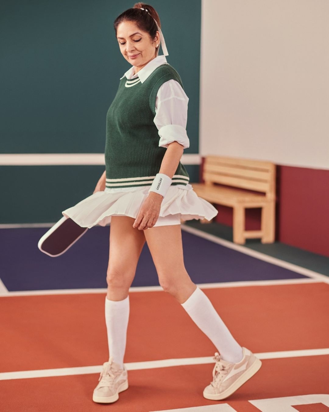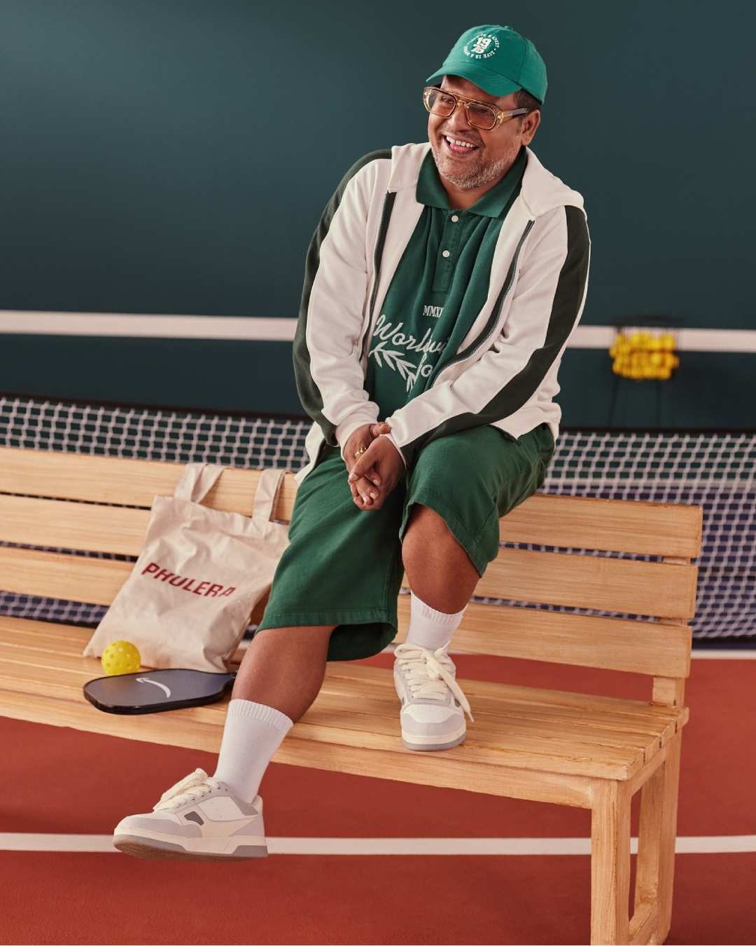 They are all dressed in vintage-chic athletic wear, sweatbands, visors, and rackets. From crisp polo shirts to Varsity knits, and pleated skirts to cool-toned tracksuits, every look is a perfect 'ace' that highlights the fun and modern spirit of the campaign.