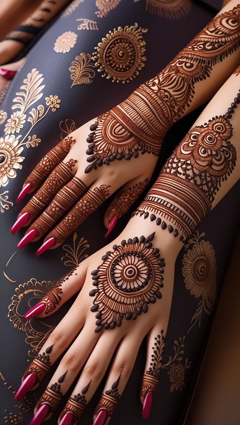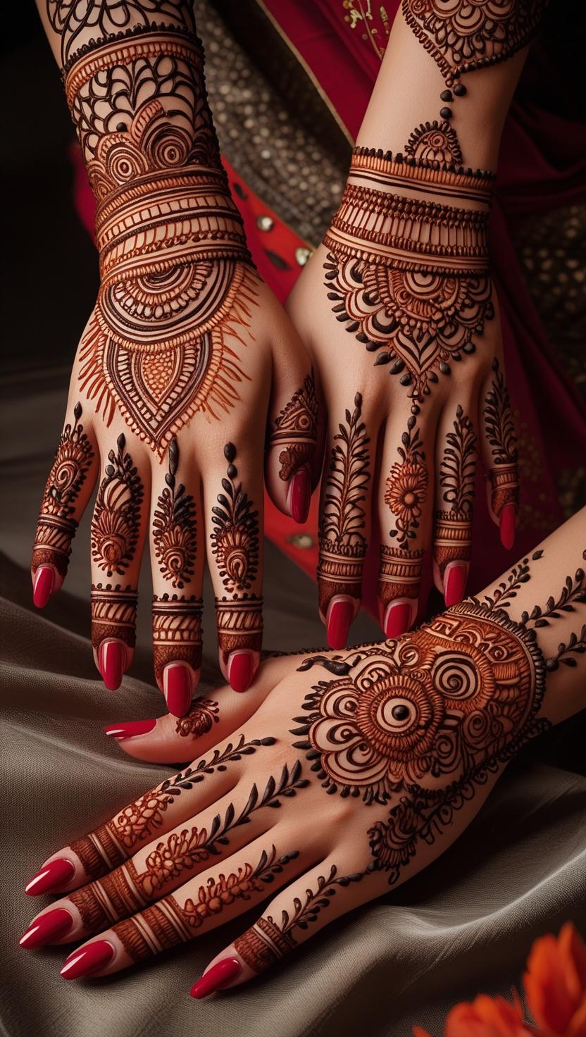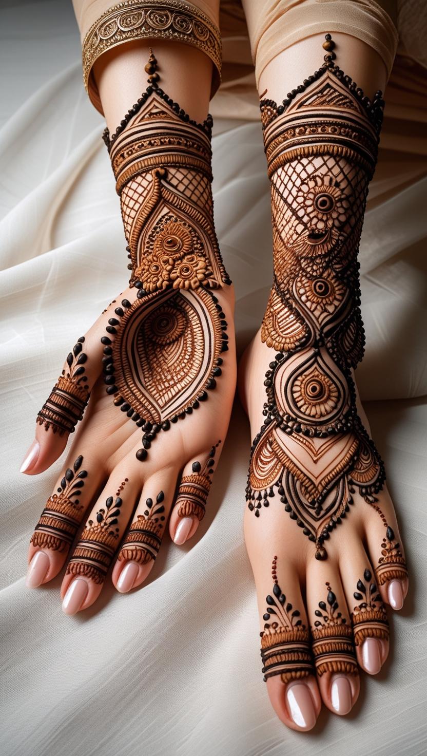 आजकल मंडाला आर्ट मेहंदी का ट्रेंड काफी ज़्यादा है और यह पैरों पर बहुत अच्छी लगती है। इसमें पैर के बीच में गोल मंडाला डिज़ाइन बनवाएं और उँगलियों पर भरी हुई मेहंदी लगाएं। यह डिज़ाइन आप खुद भी आसानी से लगा सकती हैं। मंडाला आर्ट के साथ पैरों पर लगी हुई नेल पॉलिश भी बहुत अच्छी लगती है।
