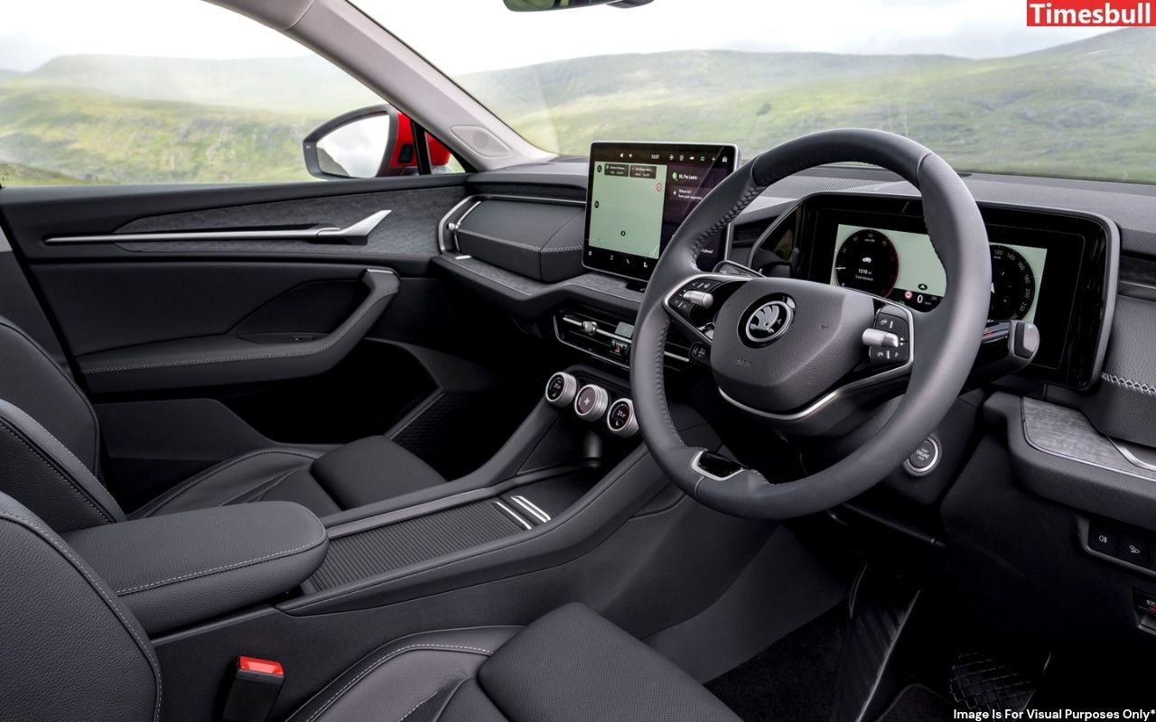 Let’s hop into the interior of the 2025 Skoda Kodiaq. So, if we are talking about features, the upcoming Skoda Kodiaq is expected to get features like panoramic sunroof, 13-inch touchscreen which obviously supports Apple Carplay and Android auto wirelessly, a 10.25-inch driver display, panoramic sunroof, ambient mood lighting, premium speaker surround sound system and wireless phone charger.