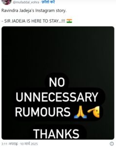 Ravindra Jadeja has shared a post on social media, in which he has rubbished the retirement rumours and said, “Don’t spread useless rumours. Thank you.” Let us remind you that Jadeja had said goodbye to the T20 format after India’s T20 World Cup win last year. Now it seems as if the 36-year-old Jadeja has made the 2027 ODI World Cup his target. There are still two years left for that World Cup to be organized and by then Jadeja will be 38 years old.
