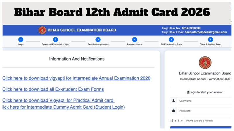 Bihar Board 12th Admit Card 2026 – Hall Tickets at secondary.biharboardonline.com