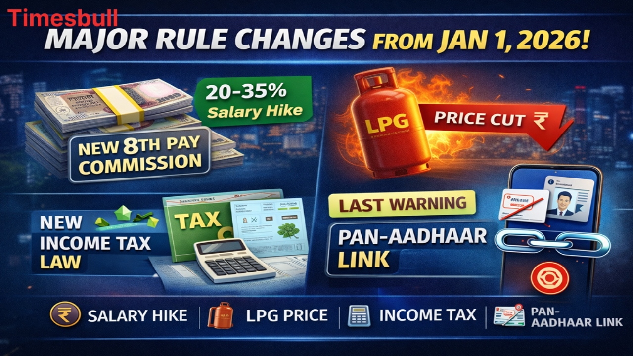 Posted inBusiness Big Changes from Jan 1, 2026: 8th Pay Commission, LPG Price Cut, New Tax & PAN Rules by Vikram SinghDecember 27, 2025 - 1:35 PMDecember 27, 2025 - 1:35 PM