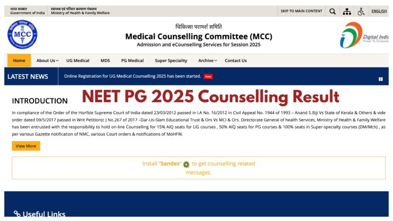 NEET PG 2025 Counselling Result – Check Direct Link & Download Status at mcc.nic.in