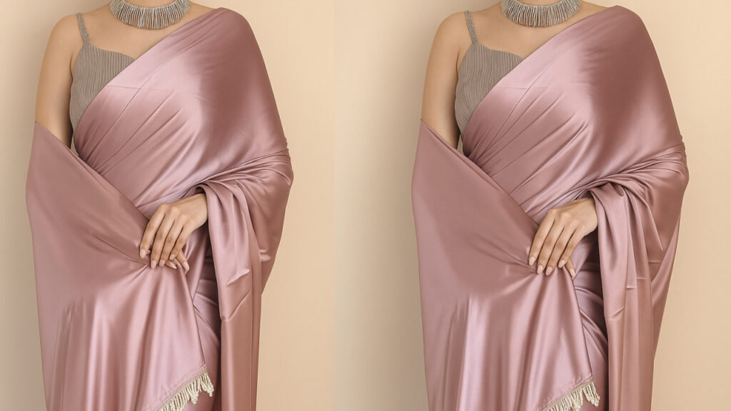 Great Summer Sale : SATAZ Rose Gold Satin Silk 1-Minute Saree – 81% Off, Grab It Now for Just Rs 947