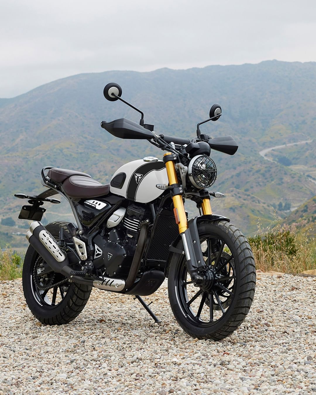 हैरिटेज-इंस्पायर्ड ग्राफिक्स, मिनिमलिस्ट LED लाइटिंग और प्रीमियम फिनिश के साथ Scrambler 400X का लुक शहर और एडवेंचर राइड्स के लिए परफेक्ट।